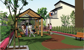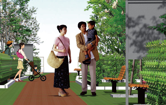 AITOWN天辰の開発において重要視されたテーマ。それが、コミュニティを豊かに育てていける環境設計でした。現代社会において薄れつつある人間味(ヒューマニティ)、モラルを遵守した自律型の地域社会、お互いに支え合う「共助精神」。これらを呼び戻すには、多くの人々が行き交い、立ち止まり、声をかけあえる場所が欠かせません。コミュニティ広場はそれを願って、街区を連結する位置に2ヶ所設けました。顔や名前を知ってもらうだけでも、うれしい。そんなささやかなヨロコビが、やがて生き甲斐になっていくことを信じています。