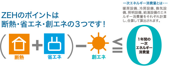 再生可能エネルギーと差し引きして、基準一次エネルギー消費量から100%の一次エネルギー消費量が削減されていること。