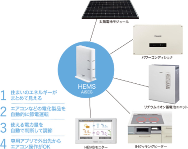 エネルギーを見える化するだけでなく、家電、電気設備を最適に制御するための管理システム、それがHEMS(ヘムス)です。政府は2030年までに全世帯へHEMSを設置することを目標としています。